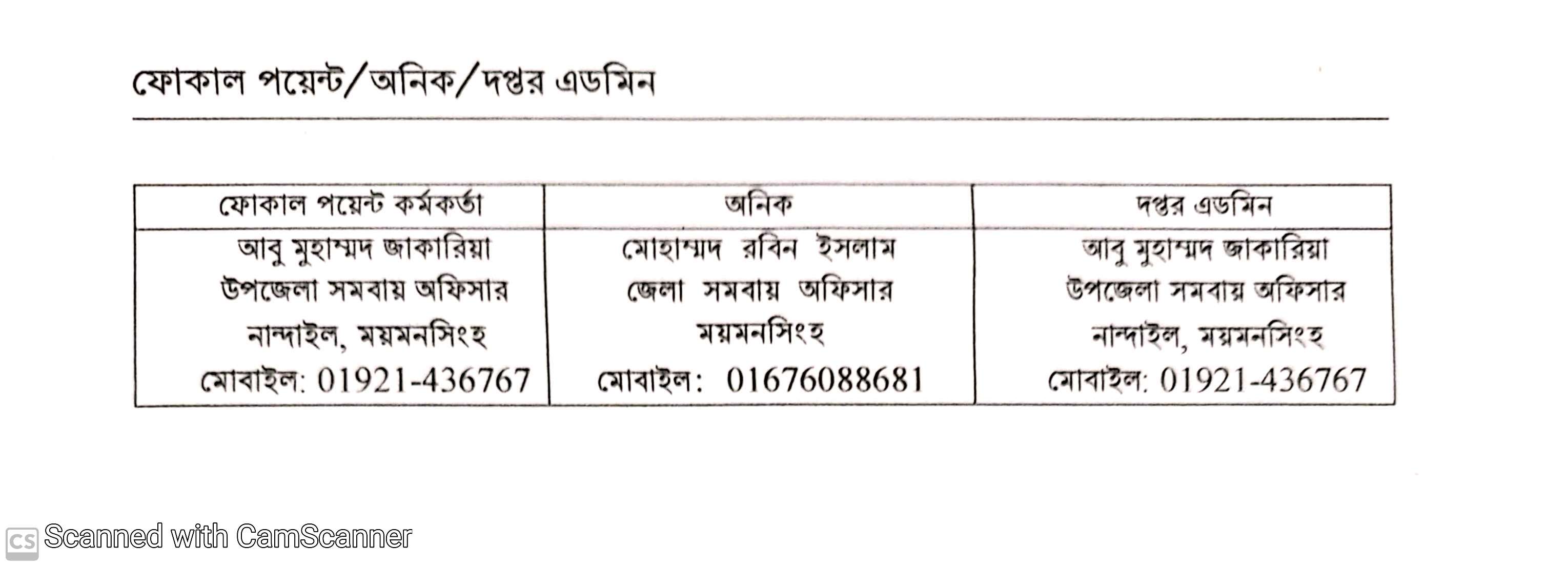 Anika ō āpila praśāsaka anika-nibētā kara, upajēlā samabāẏa karmakartā (a:Dā:) Nāndā'ila, maẏamanasinha. Āpila karmakartā- janāba mōhām'mada rabina isalāma, jēlā samabāẏa sabhāpati, maẏamanasinha.